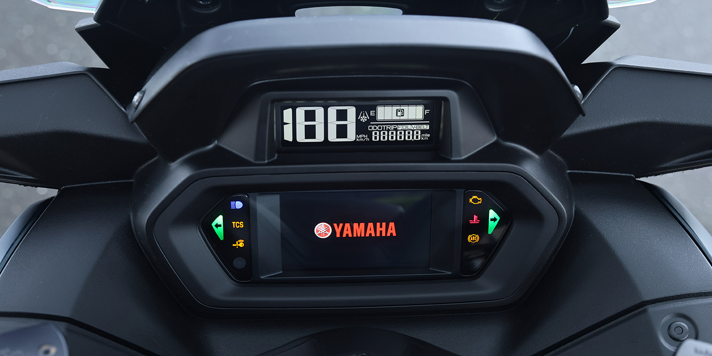 シートを新設計し、足つき性を考え太もも内側が触れる部分をスリムに、4.2インチカラーTFTディスプレイとスピードメーターやオドメーターを表示するメインディスプレイの2画面。Y-Connectをスマートフォンと連携することで、さまざまな車両情報がわかっちゃう!ナビゲーションも見やすくてこだわりを感じます。